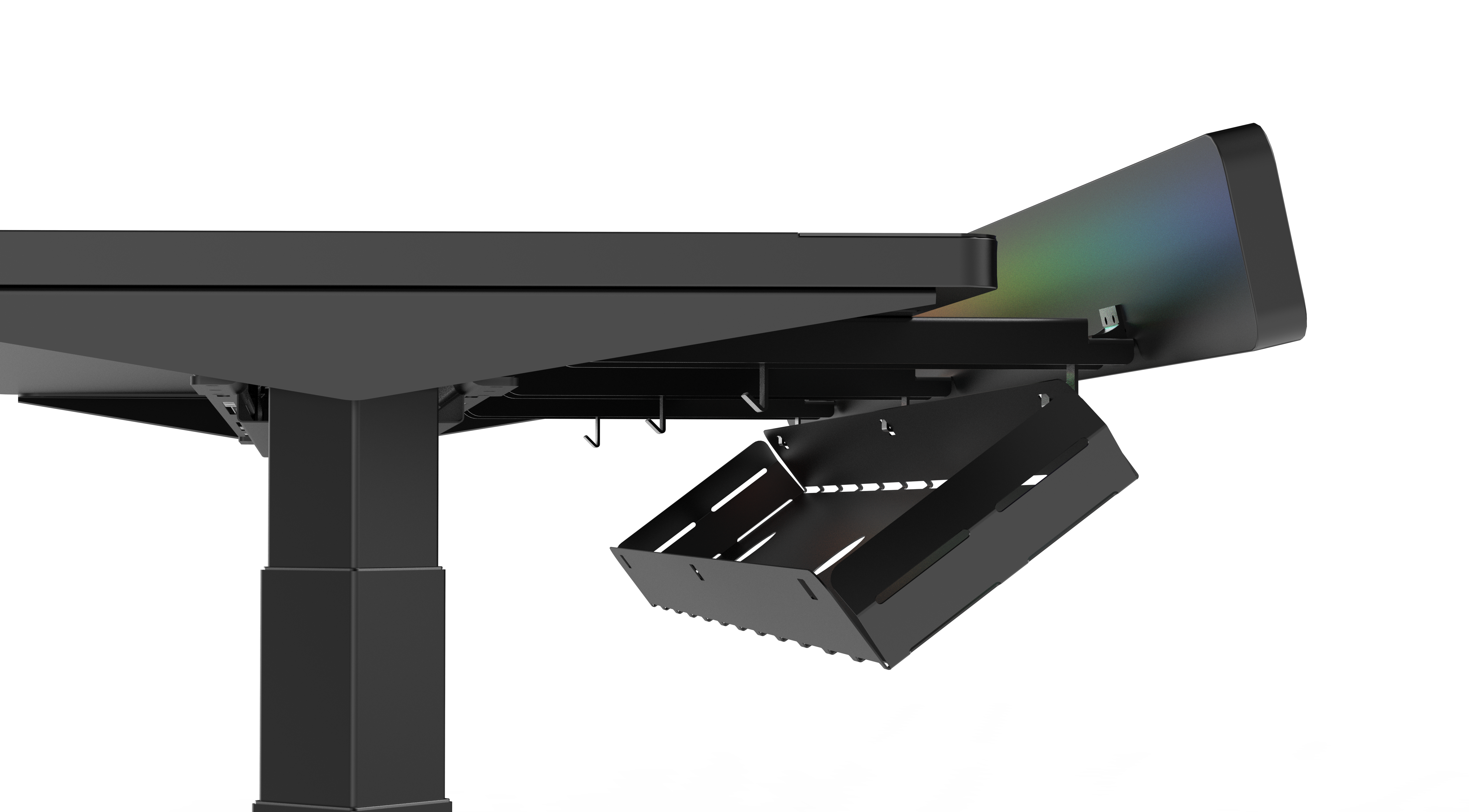- Kablo yönetim sistemi, kolay sökülebilen manyetik tasarımı ve kablaların düzenli saklanması için açılır yapıya sahiptir.